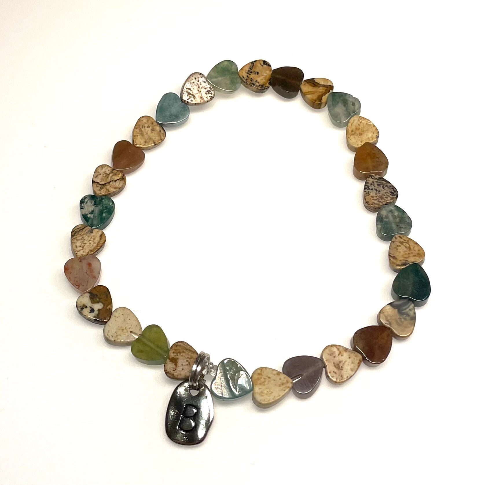 Damesarmbandje met natuurstenen hartjes in natuurtinten