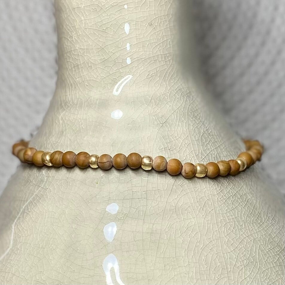 Enkelbandje met bruine van natuursteen gecombineerd met goudkleurige rocailles